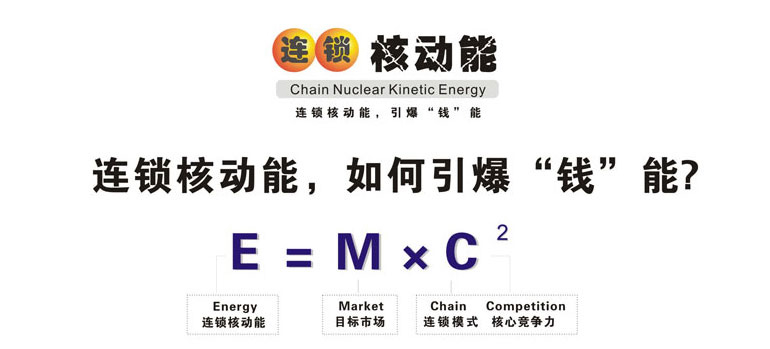 • 廣州采納企業(yè)管理顧問有限公司陳宏創(chuàng)建的連鎖核動(dòng)能理論 以愛因斯坦的能量公式為基礎(chǔ)創(chuàng)建,其理論意義是: 企業(yè)找準(zhǔn)了目標(biāo)市場(chǎng),以連鎖的方式經(jīng)營,核心競(jìng)爭力越大, 推動(dòng)其發(fā)展能量就越大。